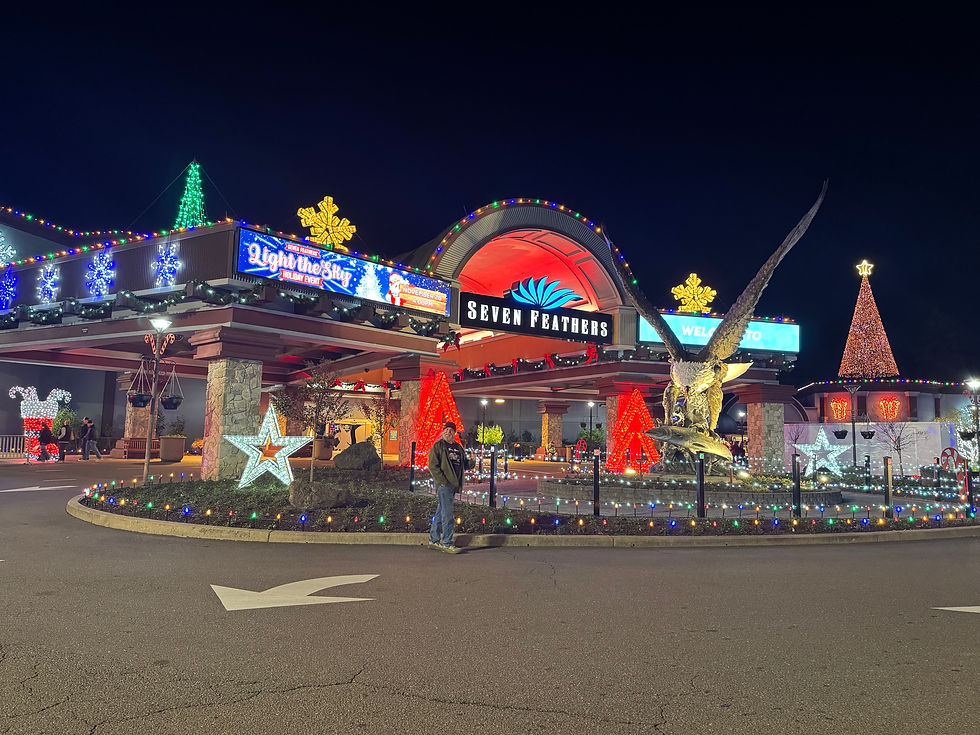 Usually when starting our winter road trip we take the scenic route down the 101 but this time we are in a rush to get down south so I-5 it is. The halfway point is the Seven Feathers Casino in Canyonville Oregon. I get to get my gamble on and we get to park overnight for free... win-win.
